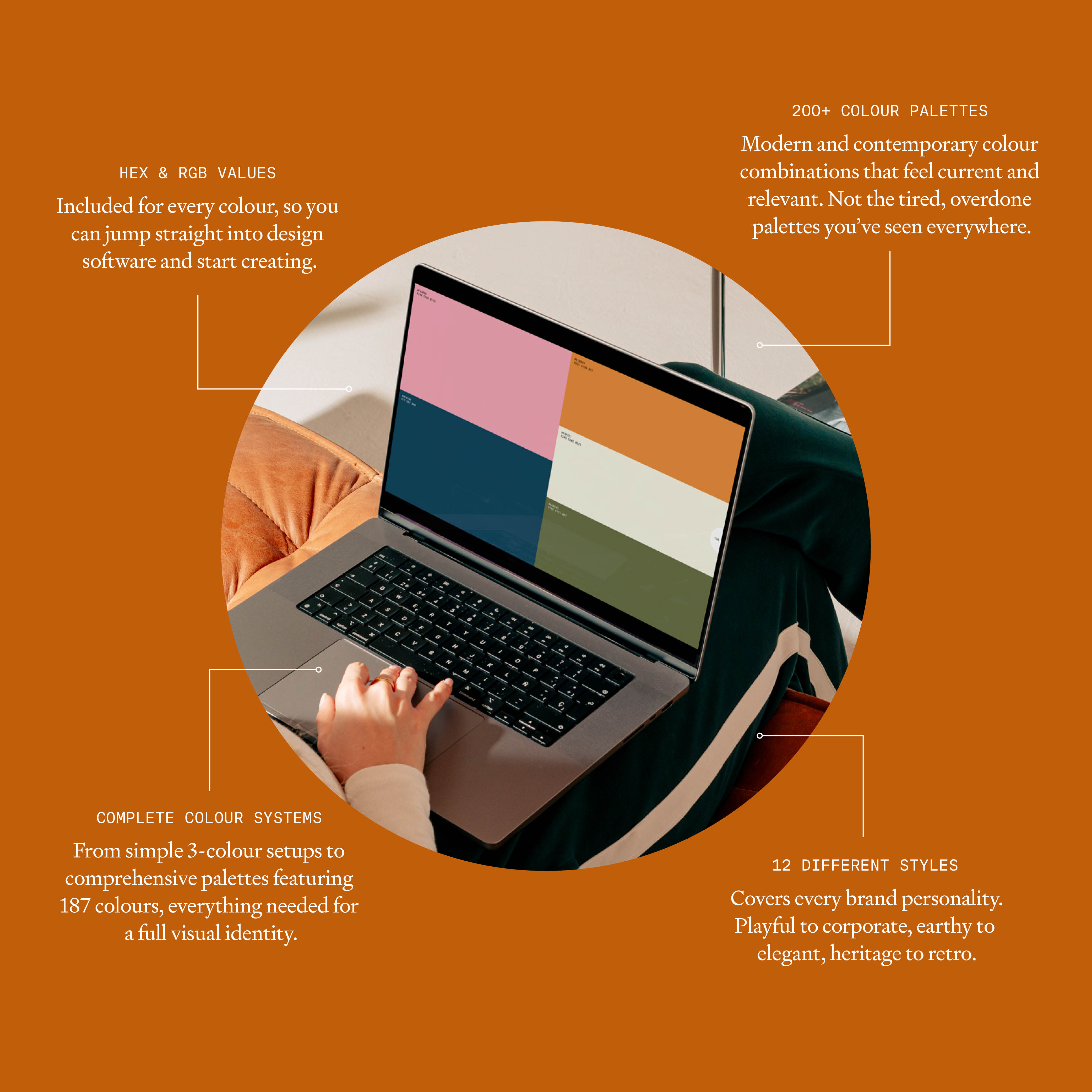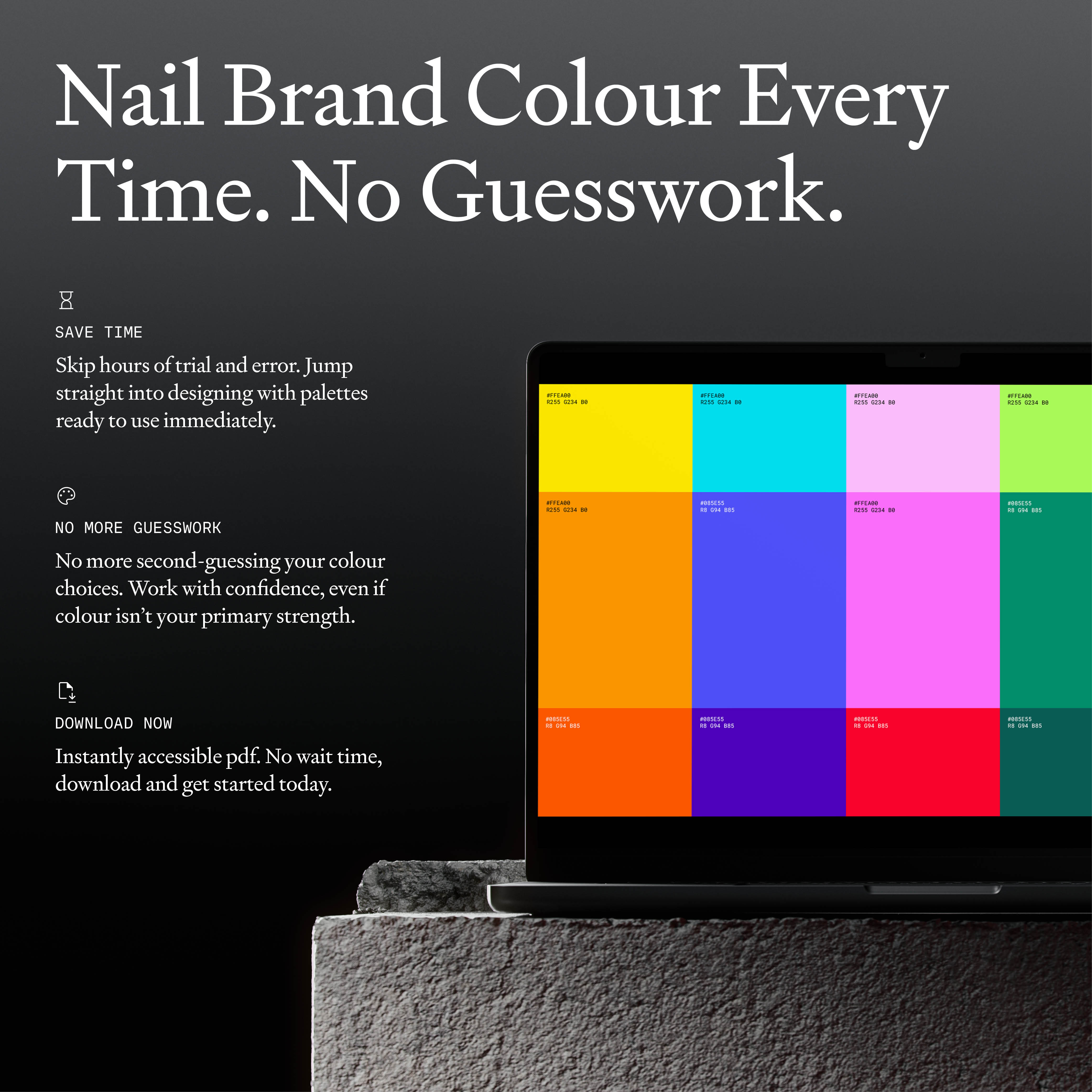 Hex Codes & RGB Values included for every colour, so you can jump straight into design software and start creating.