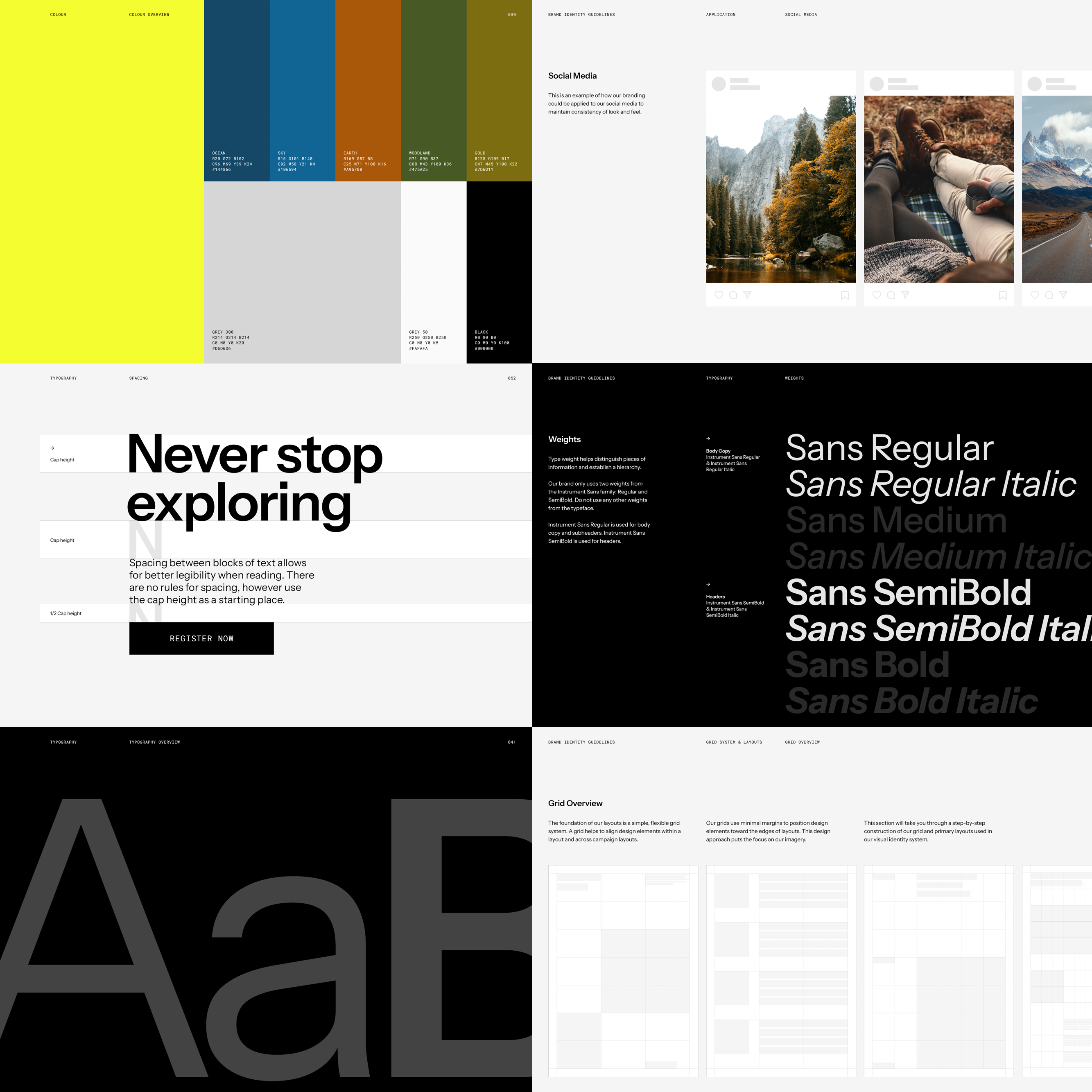 A Brand Identity is a custom project created by a Graphic Designer for a specific client. It generally includes a custom logo, colour palette, typography, photography and brand strategy. In comparison a Brand Guideline is a tool used to present the Brand Identity. This ensures that any marketing materials created in the future will be consistent with the intended vision. Our templates are created for Graphic Designers to use in their Brand Identity projects when creating custom work.